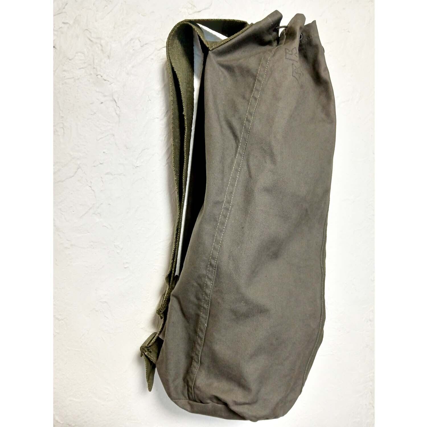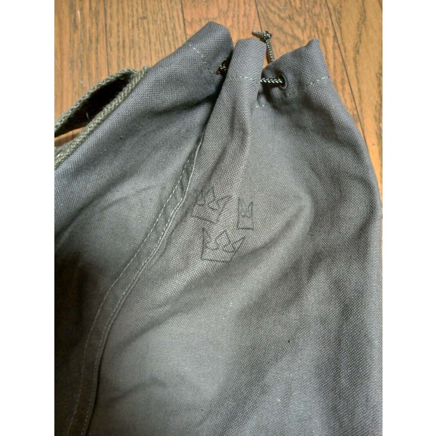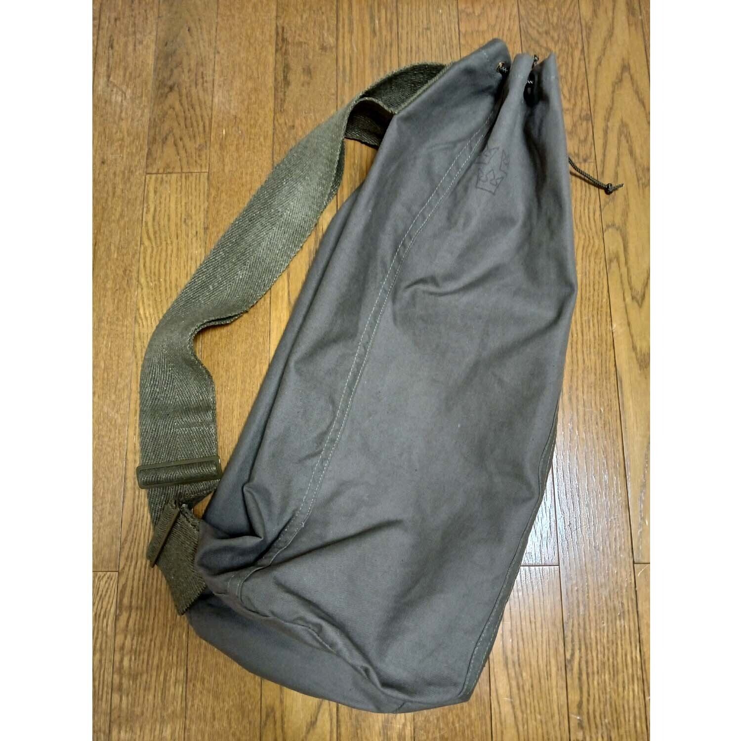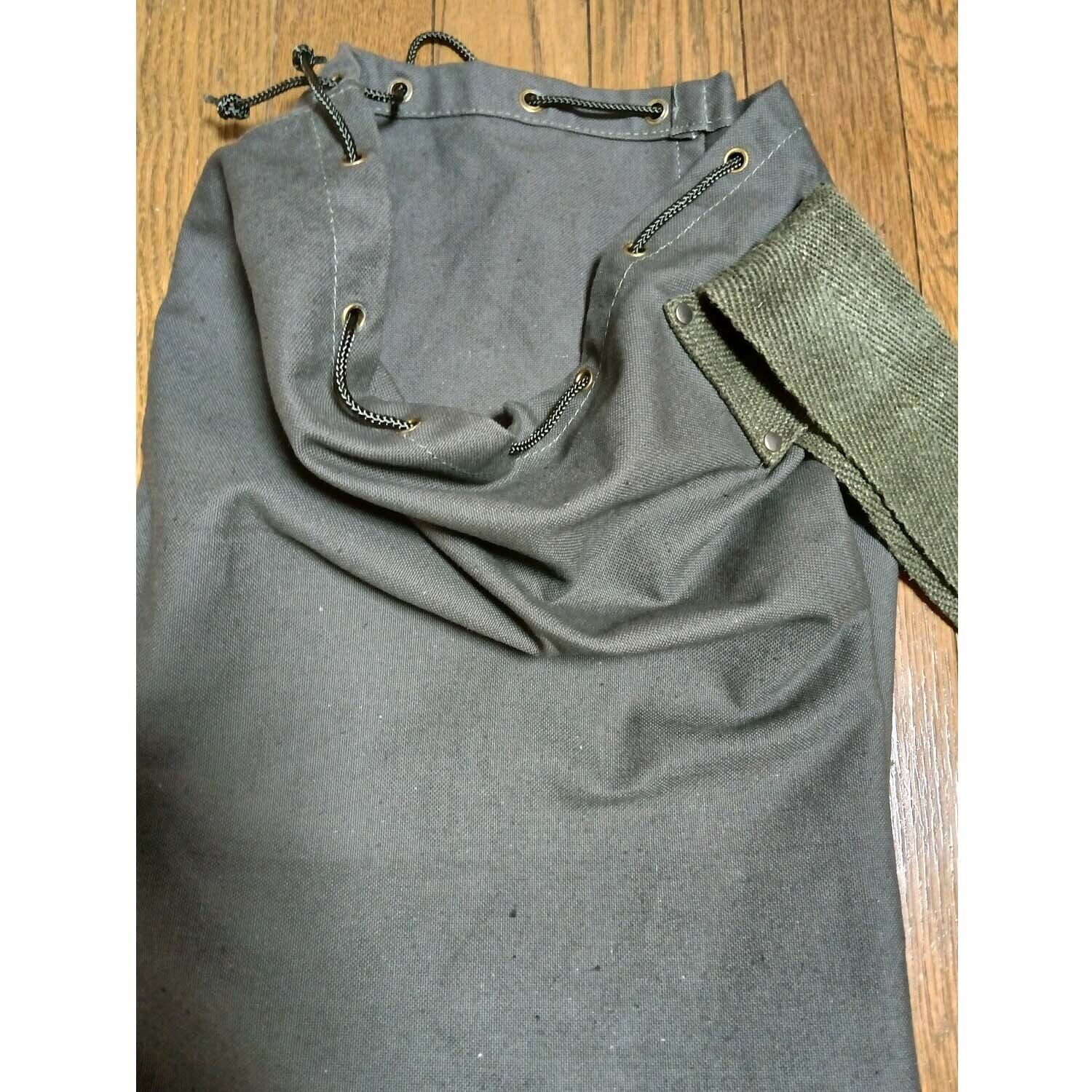 デッドストックのスウェーデン軍ダッフルに、ドイツ軍ショルダーベルトをセット、肩から斜め掛けもできるダッフルバッグになります。