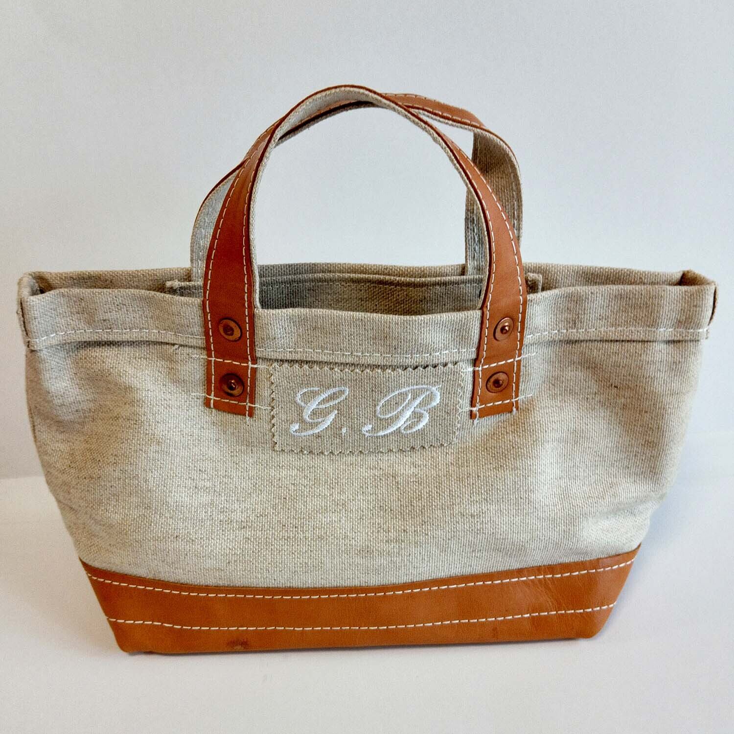 縦糸が麻、横糸が綿の麻帆布生地に、持ち手片側と底に牛革を使用。